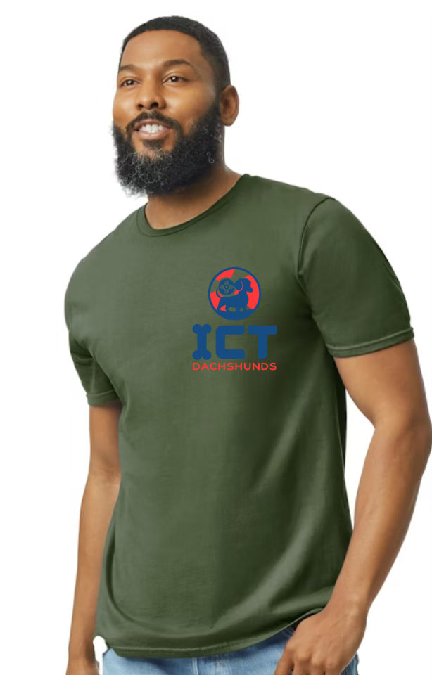 Gildan Softsyle in Military Green. I only have the color in the pictues. If you want a different color please message and we can take care of it but it will be regular prices. S-XL $25, 2x-3x $28 4x $30. If choosing pick-up they will be available at the next event which is Dachsgiving on November 16th.